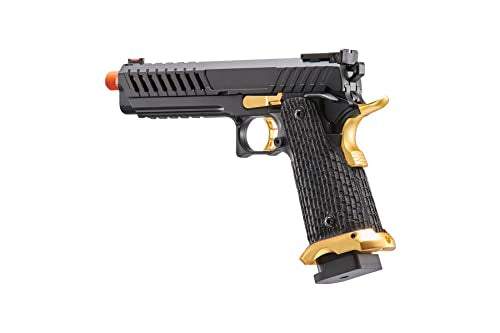 Lancer Tactical Knightshade Hi-Capa Gas Blowback Airsoft Pistol Lightweight Full Metal Slide High FPS Color: Black / Gold